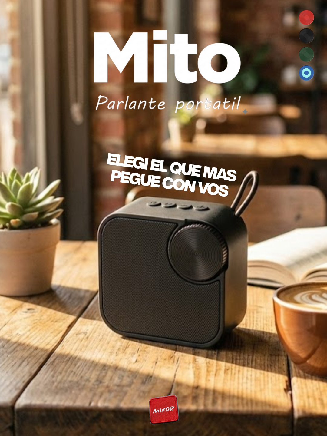 Control ágil de volumen con rueda física. Diseño 11x11x6cm con terminación suave.